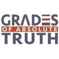 A white mobile spin custom USB flash drive with grey & orange Grades Of Absolute Truth text logo on one side. Standard USB 3.0 on one side and USB-C on the other side.